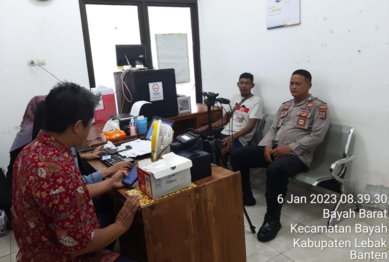 Gemasiber80news.com, LEBAK – Kepala Unit (Kanit) Binmas Polsek Bayah Polres Lebak Bripka Sutardi Didampingi Bhabinkamtibmas Polsek Bayah Brigadir Eka Trisna melaksanakan kegiatan sambang ke Pada Akhmad Saleh Kasi Pelum Kecamatan Bayah yang Bertempat di Aula Kantor kecamatan Bayah Kabupaten Lebak. Jum’at (06/01/2023)