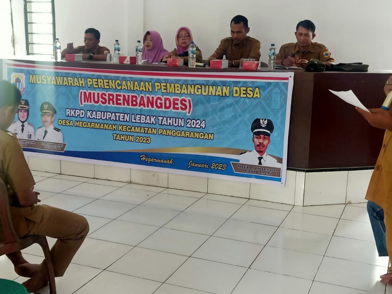 Gemasiber80news.com, LEBAK – Kepala Desa Hegarmanah Apid Hamidi S.Pd Menghadiri Musyawarah Rencana Pembangunan Desa (Musrenbangdes) Rencana Kerja Pembangunan Daerah (RKPD) Pemerintah Daerah Kabupaten Lebak tahun 2024, hadir dalam kegiatan tersebut Sekretaris Camat Dra Sri Mustika beserta jajaran, Unsur Korwil Kesehatan, Korluh Pertanian, Korwil Pendidikan, Polsek Panggarangan Koramil 0314/Panggarangan, Sekretaris Desa, BPD,LPM, PLD, PKK,Karang Taruna, Ketua RT/RW, Tokmas, dan tamu undangan lainnya bertempat diaula kantor Desa Hegarmanah Kecamatan Panggarangan Kabupaten Lebak Provinsi Banten Selasa (24/1/2023)