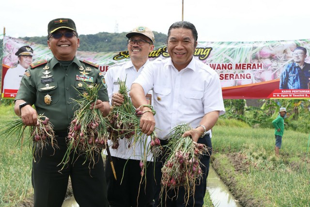 “Kita melakukan panen bawang merah. Bawang merah adalah salah satu komoditi pemicu tingkat inflasi. Dan ternyata bawang merah itu cukup baik dikembangkan di beberapa titik di Provinsi Banten,” ungkap Al Muktabar.