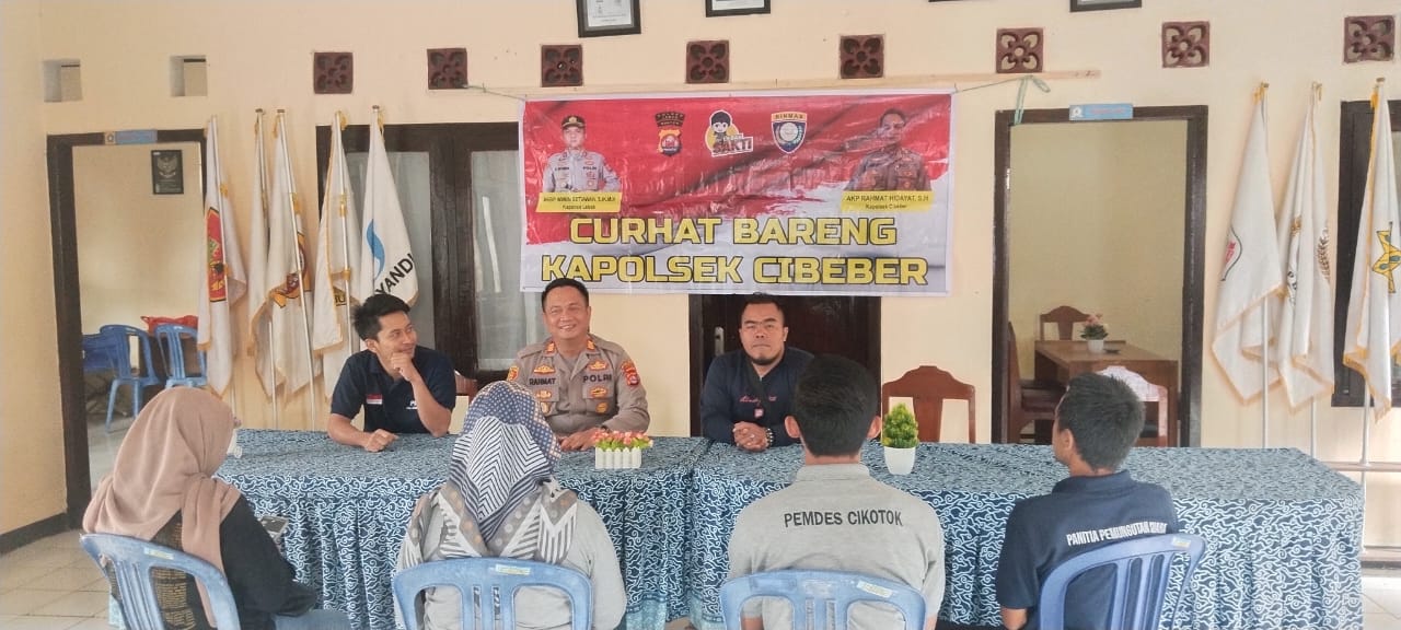 “Kapolsek Cibeber Didampingi Kanit Binmas serta Bhabinkamtibmas Polsek Cibeber, melaksanakan program Jum’at Presisi Polri, giat sambang, silaturahmi dan mendengarkan curhatan dari masyarakat di Kp. Cikotok Ds. Cikotok, Membahas tentang gangguan kamtibmas” ungkapnya