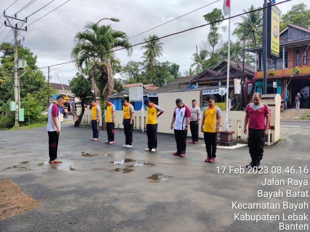 Usai melaksanakan apel pagi di Halaman Mako Polsek Bayah Polres Lebak dan dilanjutkan dengan olahraga bersama sebelum melaksanakan olahraga lari pagi, terlebih dahulu dilakukan pemanasan yang di ambil oleh Kapolsek Bayah Resort Lebak Iptu Syamsu Riyanto