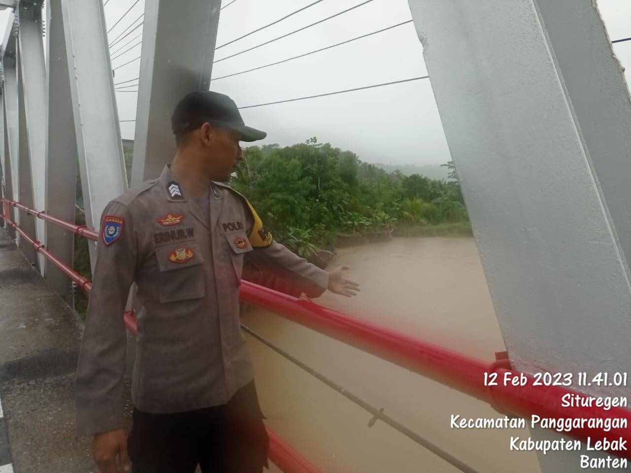 Gemasiber80news.com, LEBAK – Personil Polsek Panggarangan Resort Lebak, Bripka Atep Eka dan Brigadir Eri Nurwijayanto melakukan pengecekan debit air Muara sungai Cisiih, dijembatan Cisiih,Desa Situregen, Kecamatan, Kabupaten Lebak, Banten, Minggu (12/2/2023).