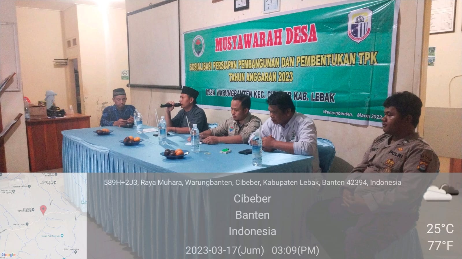 Dalam giat Musyawarah desa tersebut Bhabinkamtibmas Polsek Cibeber Polres Lebak Briptu Raden Tofik Rabbani Senantiasa mengajak warga masyarakat dan tokoh beserta aparatur desa untuk menjaga kekompakan dan Sinergistas dalam pembangunan di desanya , dengan hadirnya Bhabinkamtibmas di desa selaku pembina desa dapat menjalin hubungan silaturahmi kemitraan antara kepolisian dengan pemerintahan desa Warungbanten khususnya di wilayah Cibeber harapan pentingnya dalam pembangunan dan untuk menjaga stabilitas Ketahanan pangan maupun tingkat keamanan serta ketertiban di tempat Lingkungannya mulai dari tingkat RT , RW dan desa agar terbangun jalinan komunikasi untuk membangun sarana dan Prasarana sebagai penunjang kehidupan warga masyarakat yang ada di wilayah Cibeber .