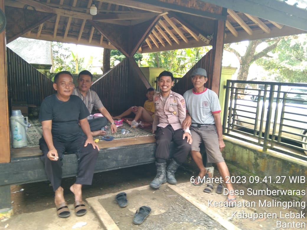 Seperti halnya yang dilakukan Bhabinkamtibmas Desa Sumberwaras Polsek Malingping Polres Lebak Brigadir Togu menyambangi warganya dan mengobrol.
