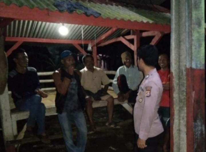 Dalam kesempatan tersebut Brigadir Togu menyambangi warga yang sedang jaga malam di pos ronda untuk menyampaikan pesan kamtibmas dalam menjaga keamanan, kegiatan tersebut merupakan upaya Bhabinkamtibmas dalam menjalin silaturahmi dan menciptakan situasi Kamtibmas yang aman dan tertib di lingkungan warga Desa binaannya.