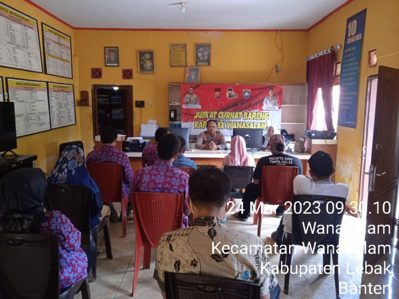 Kapolres Lebak AKBP Wiwin Setiawan,S.I.K.,M.H melalui Kapolsek Wanasalam AKP Kasih Suparja, mengatakan, Jum’at Curhat merupakan sarana yang diberikan kepada masyarakat yang ingin menyampaikan berbagai masalah berkaitan dengan layanan Kepolisian maupun gangguan Kamtibmas yang terjadi di masyarakat, sehingga permasalahan yang terjadi dapat diselesaikan bersama dengan mudah.