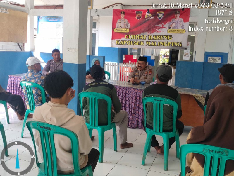 Gemasiber80news.com, LEBAK – Adanya program jumat curhat, Kapolsek Malingping Polres Lebak AKP Sugiar Ali Munandar, S.H yang di wakili Kanit Samapta Polsek Malingping AKP Agus Ruhimat yang di dampingi Bhabinkamtibmas Desa Pagelaran Bripka Alham mengadakan jumat curhat bareng warga di Desa Pagelaran Kecamatan Malingping Kabupaten Lebak. Jumat (10/3/2023).