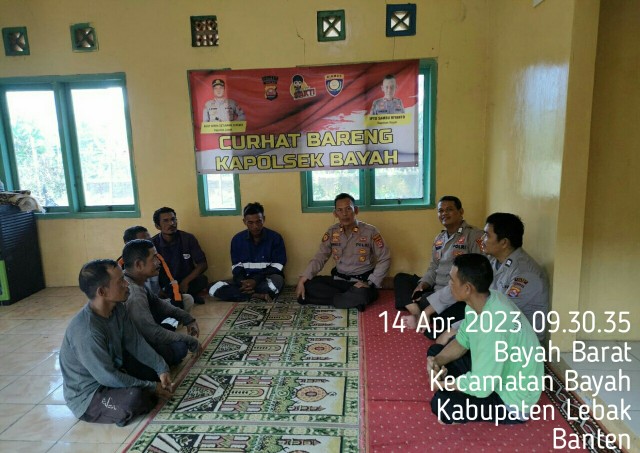 Giat Jum’at curhat yang dilakukan ini untuk menjalin silaturahmi serta mendengar permasalahan yang terjadi di tengah-tengah masyarakat, Pada giat tersebut, Kapolsek Bayah Polres Lebak turun langsung bertatap muka dengan warga masyarakat di Mushola Polsek Bayah