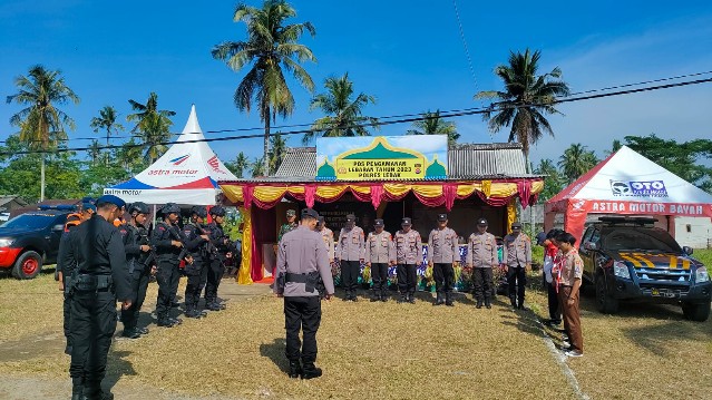 Kapolres Lebak Polda Banten AKBP Wiwin Setiawan, S.I.K.,M.H. melalui Kapolsek Bayah Polres Lebak Iptu Samsu Riyanto selaku Kapospam memberikan pengarahan kepada anggota Pospam wisata Pantai Sawarna.