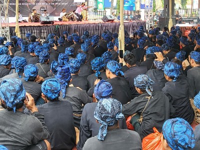 Sebelum ritual Seba Baduy yang dilaksanakan Sabtu malam (29/4/2023) warga Baduy transit dan istirahat di halaman Gedung Juang 1945 Kota Serang. Selama transit, mereka disuguhi berbagai atraksi kesenian khas Banten.