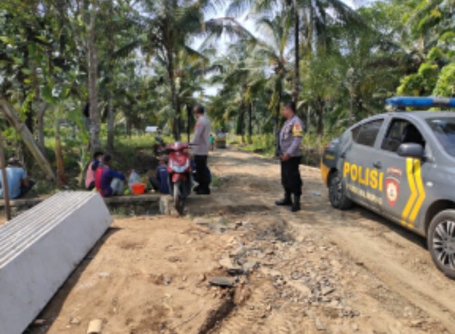 Pada saat patroli, anggota Polsek malingping melihat warga sedang bekerja untuk menyampaikan pesan kamtibmas di Kampung Talanca Desa Cilangkahan Kecamatan Malingping Kabupaten Lebak. Sabtu (8/4/2023) siang.