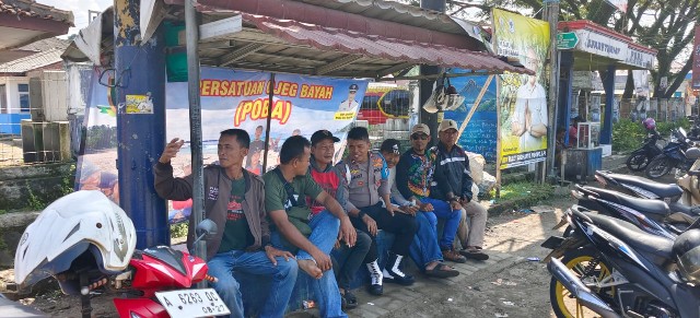 Gemasiber80news.com, LEBAK – Kanit Provost Polsek Bayah, Aipda Bayihaki memberikan arahan kepada para pengemudi ojek di Terminal Bayah, Kabupaten Lebak, Banten pada minggu .