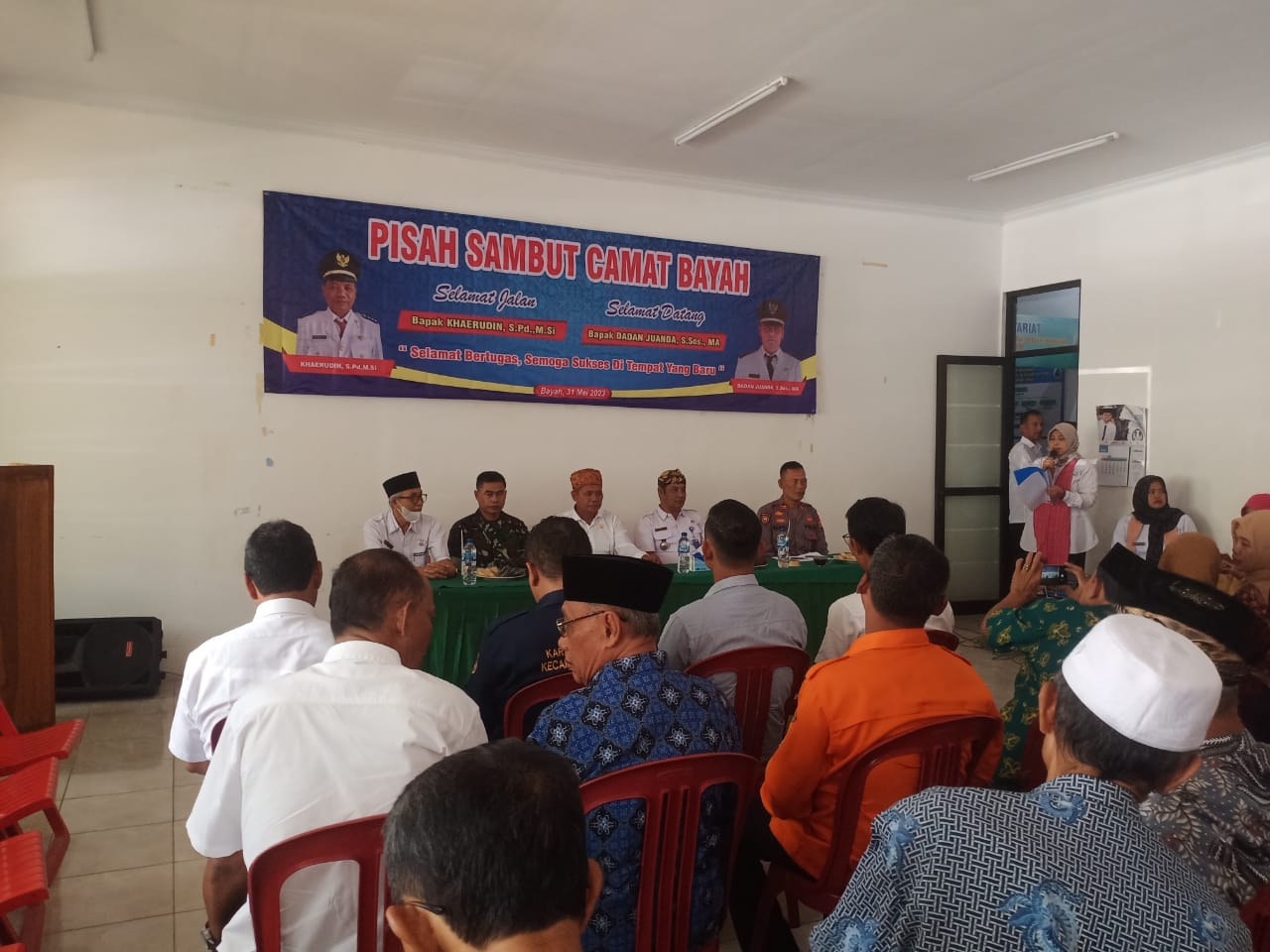 Gemasiber80news.com, LEBAK – Ratusan warga Kecamatan Bayah Kabupaten Lebak Provinsi menghadiri acara pisah sambut camat Bayah dari Khaerudin ke Dadan Juanda, turut hadir Kapolsek Bayah Iptu Samsu Riyanto, Danramil 0315/ Bayah Kapten Nasori, Kepala KUA Bayah, Korwil Pendidikan, Kepala Puskesmas, Kepala Desa, Ketua MUI Bayah Ustad Khaelani Susby, Ormas, Tokoh Masyarakat, dan tamu undangan bertempat di aula kantor kecamatan Bayah Rabu (31/5/2023)