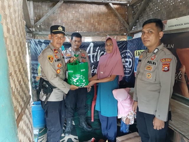 Dalam hal ini Kapolsek Bayah Polres Lebak Iptu Samsu Riyanto bersama Personel mengunjungi Suhaemi warga kampung ciwaru lapang desa Bayah Barat kecamatan Bayah kabupaten Lebak dengan memberikan bantuan sosial (Bansos) berupa paket sembilan dan bahan pokok (Sembako)