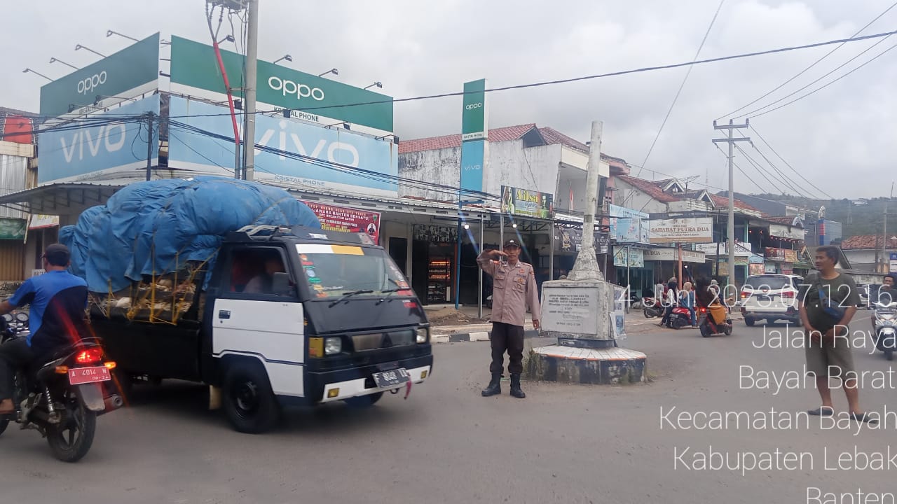 Gemasiber80news.com, LEBAK – Guna menekan Angka Kecelakaan Lalu Lintas, Jajaran Polsek Bayah Polres Lebak Melaksanakan Kegiatan Gatur Lalin Pagi hari di simpang terminal Bayah, desa Bayah Barat, kecamatan Bayah, Kabupaten Lebak, Provinsi Banten. Minggu (4/6/2023)