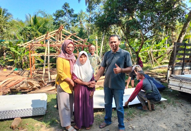 Syaeful Jaro Komarudin serahkan bantuan material bangunan kepada Mak Iyum / Foto: Istimewa