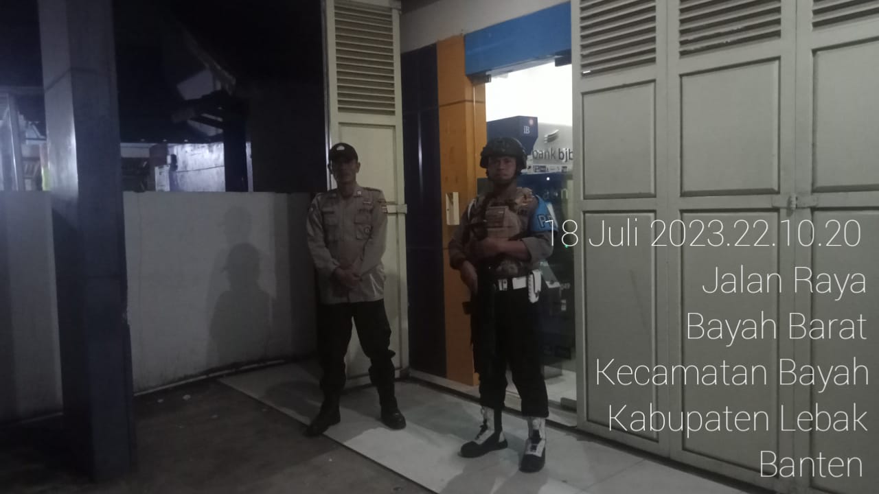 Gemasiber80news.com, LEBAK – Guna menciptakan keamanan Jajaran Polsek Bayah Polres Lebak melaksanakan kegiatan Patroli Harkamtibmas ke Anjungan Tunai Mandiri (ATM) Bank BRI dan BJB yang berada di wilayah kecamatan Bayah untuk memastikan bahwa kondisi dan situasi di perbankan maupun tempat mesin ATM dalam keadaan aman dan terkendali dengan harapan masyarakat yang akan bertransaksi di mesin ATM merasa aman dan nyaman serta terhindar dari pelaku kejahatan. Rabu (19/7/2023)
