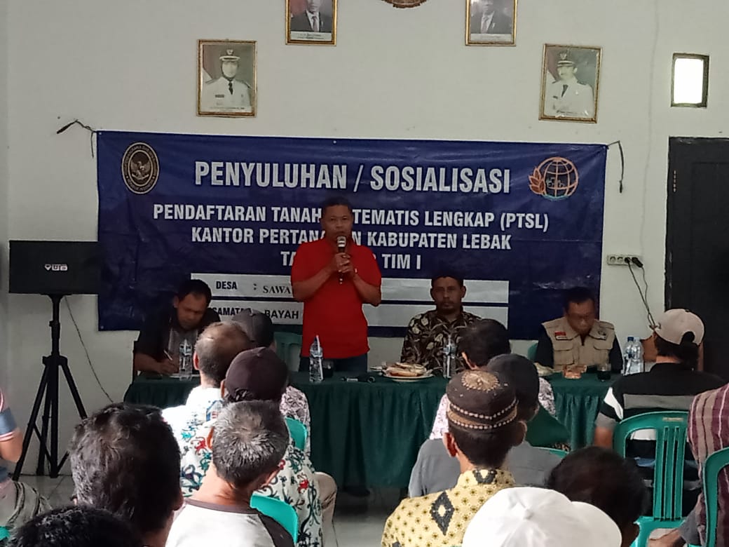 Gemasiber80news.com, LEBAK – Badan Pertanahan Nasonal (BPN) Kabupaten Lebak Provinsi Banten menggelar acara penyuluhan/sosialisasi Pendaftaran Tanah Sistematis Lengkap (PTSL) di Desa Sawarna Timur Kecamatan Bayah, Hadir dalam acara tersebut Arzinal dari Kantor BPN Lebak, Edi Supriyadi Kasie Pem Kecamatan Bayah, Sanusi Kepala Desa Sawarna Timur, Tokoh masyarakat dan warga bertempat di aula kantor Desa Sawarna Timur Sabtu (5/8/2023)