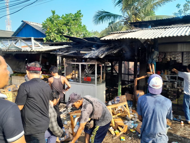 “Adapun 3 unit warung yang terbakar diantaranya warung chiken milik Yongki (17), warung sembako milik Umam (19) dan warung buah buahan milik Nanang (32),” ujarnya.