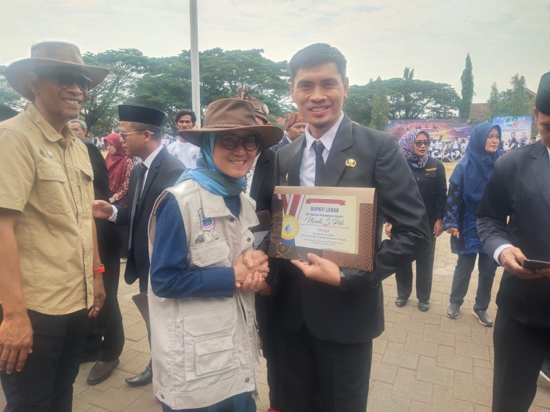 Gemasiber80news.com, LEBAK – Kepala Desa (Kades) Cijengkol Kecamatan Cilograng Nendi, S.Pdi meraih piagam penghargaan dari Bupati Lebak DR Hj Iti Octavia Jaya Baya SE, MM sebagai Kepala desa terbaik prestasi dalam bidang ketahanan pangan, penghargaan ini diberikan pada Jambore Petani Peternak Nelayan tingkat Kabupaten Lebak bertempat di Rangkasbitung Minggu (24/9/2023)