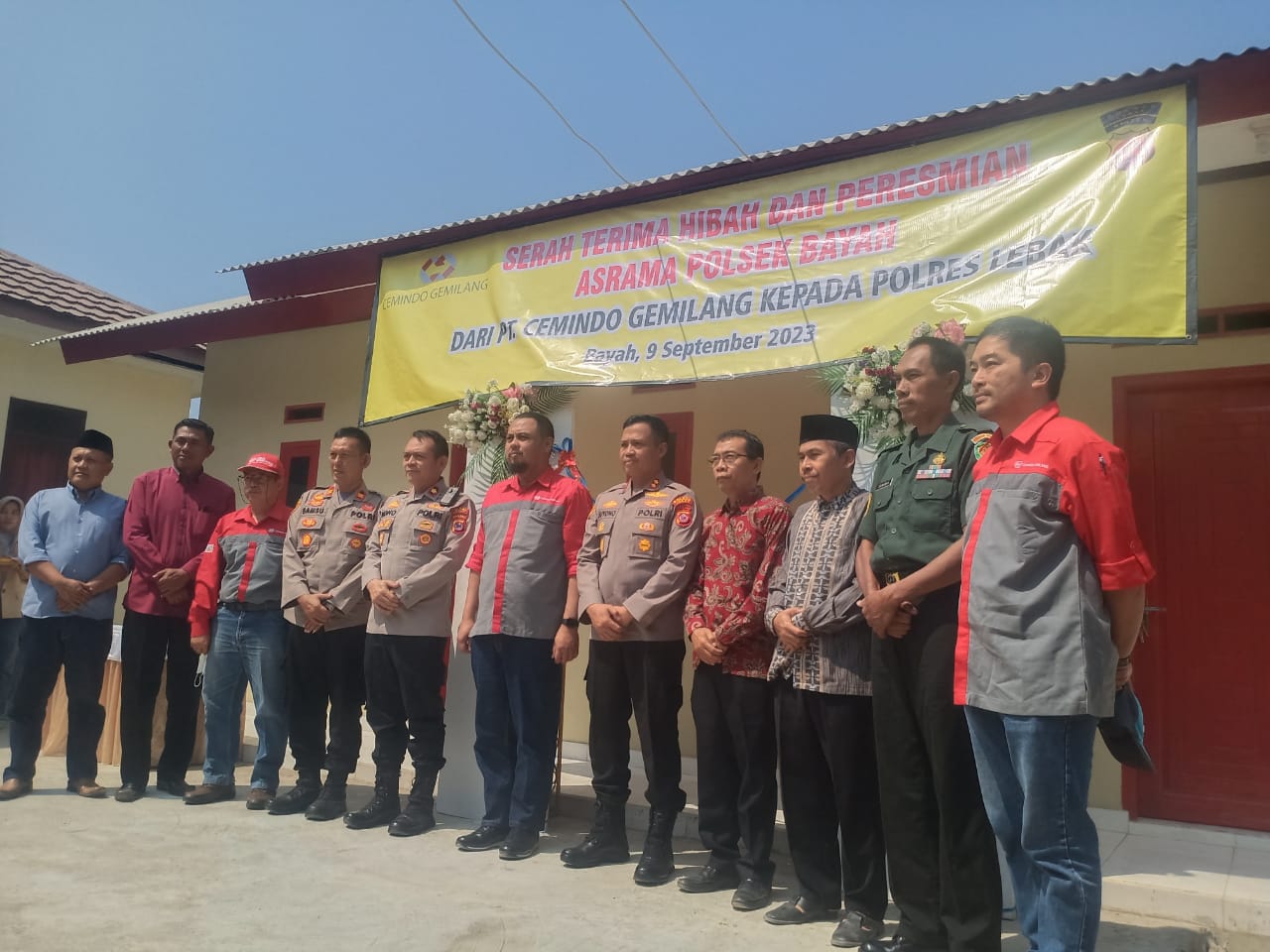 Gemasiber80news.com, LEBAK – Kapolres Lebak Polda Banten AKBP Suyono,S.IK menghadiri sekaligus meresmikan Asrama (Rumah dinas) Polsek Bayah hibah dari PT Cemindo Gemilang Tbk Produsen semen merk merah putih melalui program CSR.