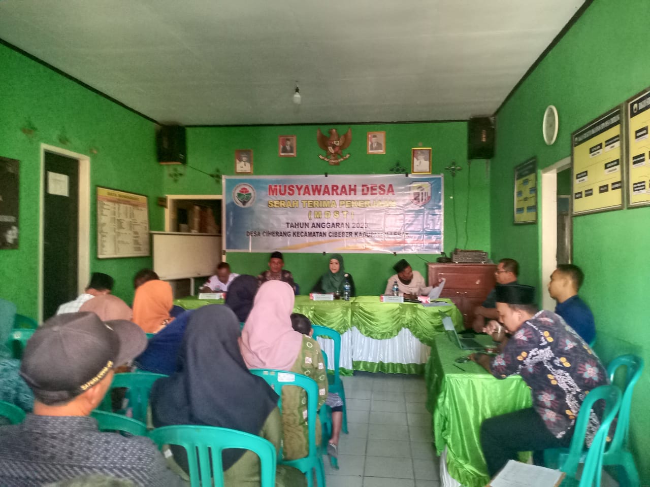 Gemasiber80news.com, LEBAK – Pemerintah Desa (Pemdes) Ciherang Kecamatan Cibeber menggelar Musyawarah Desa Serah Terima (MDST) pekerjaan yang dilaksanakan oleh TPK, tahun anggaran 2023, Hadir dalam musyawarah tersebut Kepala Desa Jumhadi (Jaro Badi) TPK, BPD, Kasie Ekbang Kesos Kecamatan Cibeber, Ketua RT/RW, Tokoh Masyarakat, dan lainnya bertempat di aula kantor Desa Ciherang Kecamatan Cibeber Kabupaten Lebak Provinsi Banten Jum’at (22/9/2023)