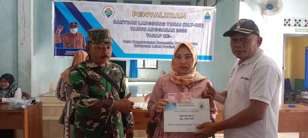 Gemasiber80news.com, LEBAK – Untuk memastikan keamanan dan ketertiban saat penyaluran Bantuan Langsung Tunai (BLT DD) yang bersumber dari Dana Desa tahun anggaran 2023 tahap 9 kepada 39 KPM di Desa Panggarangan, Serka Asmar Selaku Babinsa sekaligus Batu’ud Koramil 0314/Panggarangan Kodim 0603 Lebak menghadiri kegiatan, turut hadir Kepala Desa Panggarangan Buharta,S.Pd yang biasa disapa Jaro Abu, Staf kecamatan,dan lainnya bertempat diaula kantor Desa Panggarangan Kecamatan Panggarangan Kabupaten Lebak Provinsi Banten Rabu (6/9/2023)