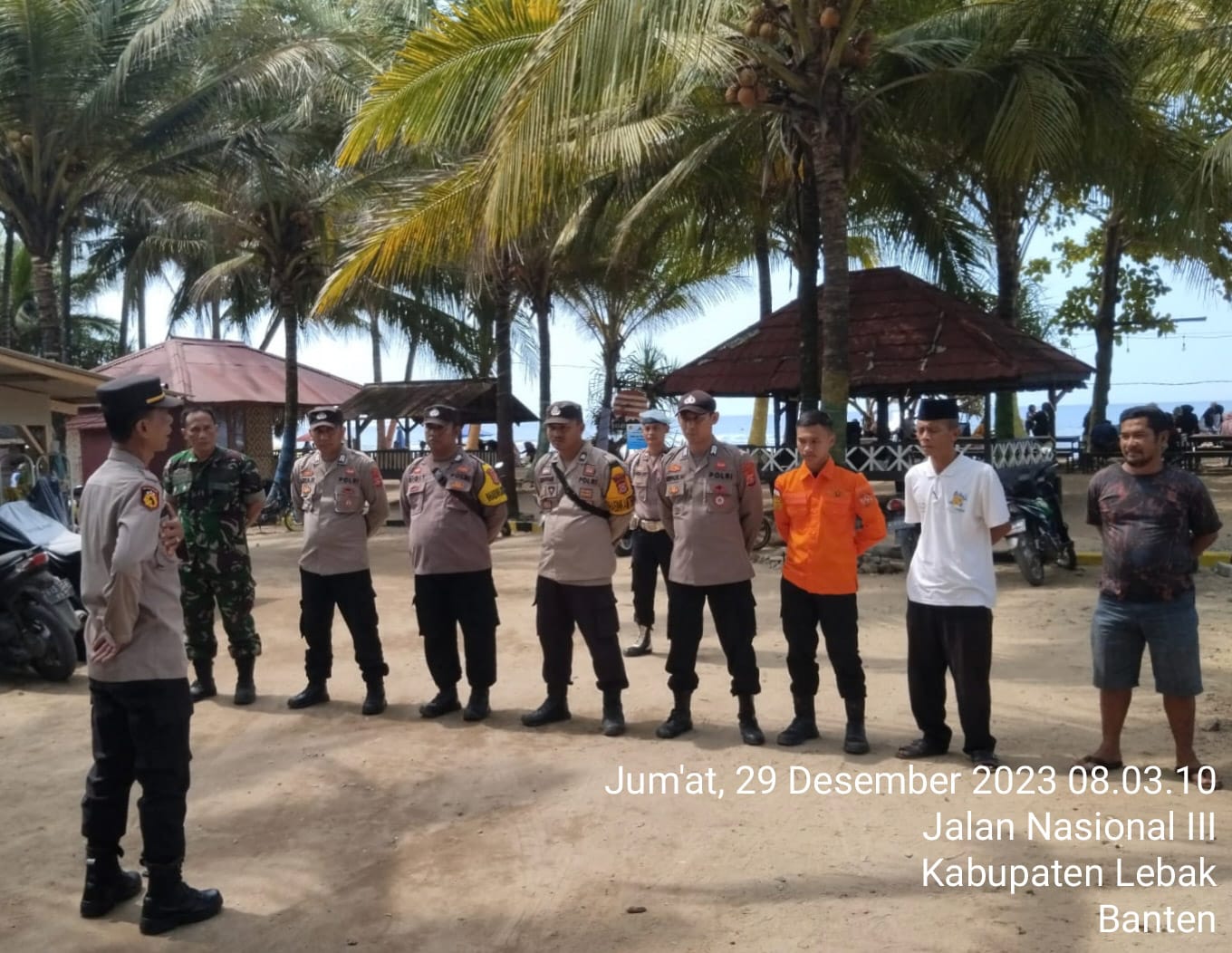 Gemasiber80news.com, LEBAK – Cek personil yang melaksanakan kegiatan pengamanan Kapolsek Panggarangan Polres Lebak Iptu Suherli Setiawan, pimpin apel pagi di Wisata Pantai Kalapa Warna dalam rangka Ops Lilin Maung 2023, Pengamanan Natal dan tahun Baru di Pos Pam Wisata Pantai Kalapa Warna. Jum’at (29/12/2023)