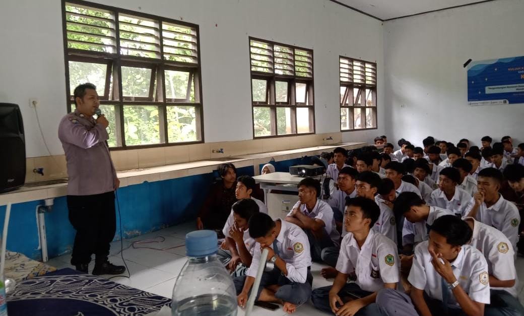 Gemasiber80news.com, LEBAK – Bhabinkamtibmas desa Sawarna Polsek Bayah Polres Lebak Brigadir Eka Trisna Bersama Babinsa 0315/Bayah Serma Sunarya dan Mahasiswa KKM Untirta menjadi Narasumber penyuluhan bahaya narkoba dan Kenakalan remaja yang digelar Polsek Bayah Polres Lebak kepada siswa Sekolah Menengah Atas (SMA) yang bertempat di SMA Negeri 2 Bayah, desa Sawarna, kecamatan Bayah, kabupaten Lebak. Senin (29/1/2024).