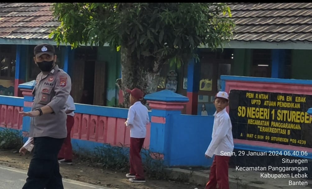 Gemasiber80news.com, LEBAK – Polsek Panggarangan Polres Lebak, Bripka Atep Eka Mulyadi, dalam menciptakan kamtibcarlantas dijalan raya melaksanakan giat “strong point” didepan SDN 1 Situregen, Desa Situregen, Kecamatan Panggarangan, Kabupaten Lebak, Provinsi Banten. Senin (29/1/2024). Pukul 06.40 wib