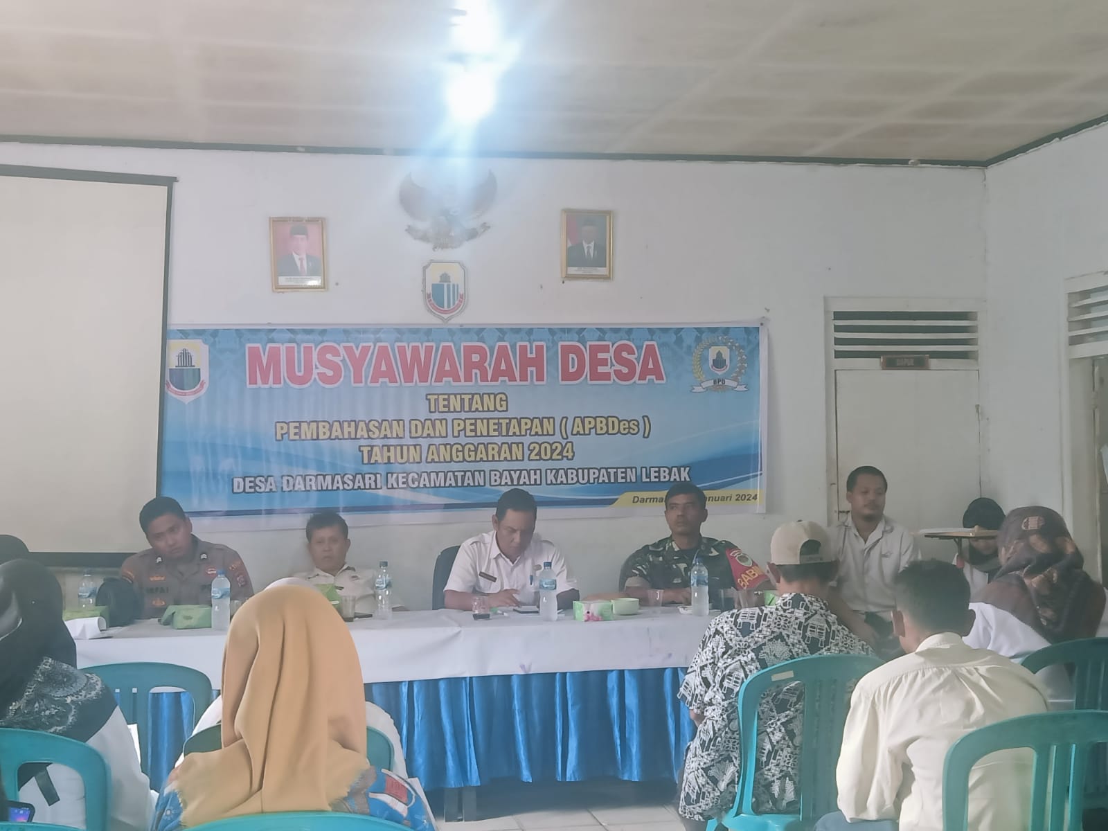 Gemasiber80news.com, LEBAK – Bhabinkamtibmas Polsek Bayah Polres Lebak Briptu Irfa’i Pangestu turut menghadiri Musyawarah Desa (Musdes) pembahasan dan penetapan anggaran pendapatan dan belanja desa (APBDes) Desa Darmasari Tahun Anggaran 2024, bertempat di aula kantor Desa Darmasari, Kecamatan Bayah, Kabupaten Lebak, Rabu (7/2/2024).