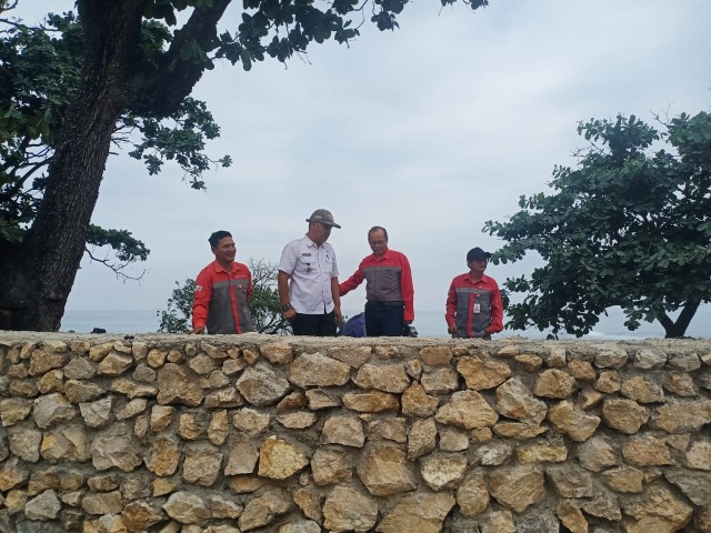 Gemasiber80news.com, LEBAK – Untuk memastikan pembangunan Landmark Geofark Bayah Dome berjalan lancar, Camat Bayah Dadan Juanda, S.Sos.,M.A didampingi Kepala Humas CSR PT Cemindo Gemilang Tbk H.Adul Kusmono meninjau langsung pembangunan yang berlokasi di pantai karang taraje Desa Darmasari Kecamatan Bayah Kabupaten Lebak Provinsi Banten Rabu (27/3/2024)