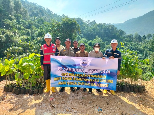 Gemasiber80news.com, LEBAK – Untuk menjaga kelestarian alam, PT Samudera Banten Jaya (SBJ) bersama dengan Forkopimcam Cibeber, BPBD melakukan penanaman berbagai jenis pohon di Daerah Aliran Sungai (DAS) Kali Cidikit dengan jumlah baru sekitar 3.000 (tiga ribu) pohon dari rencana 10.000 (sepuluh ribu) pohon.