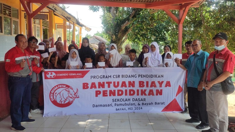 Gemasiber80news.com, LEBAK – Sebagai Perusahaan yang berdomisili di Kecamatan Bayah Kabupaten Lebak, PT Cemindo Gemilang Tbk tak hentinya memberikan kontribusi nyata dalam rangka penguatan program CSR (Corporate Social Responsibility) di berbagai bidang salah satunya di bidang Pendidikan dengan memberikan Bantuan Biaya Pendidikan kepada 135 siswa Sekolah Dasar Negeri (SDN) yang tersebar di 9 sekolah dasar di kecamatan Bayah.