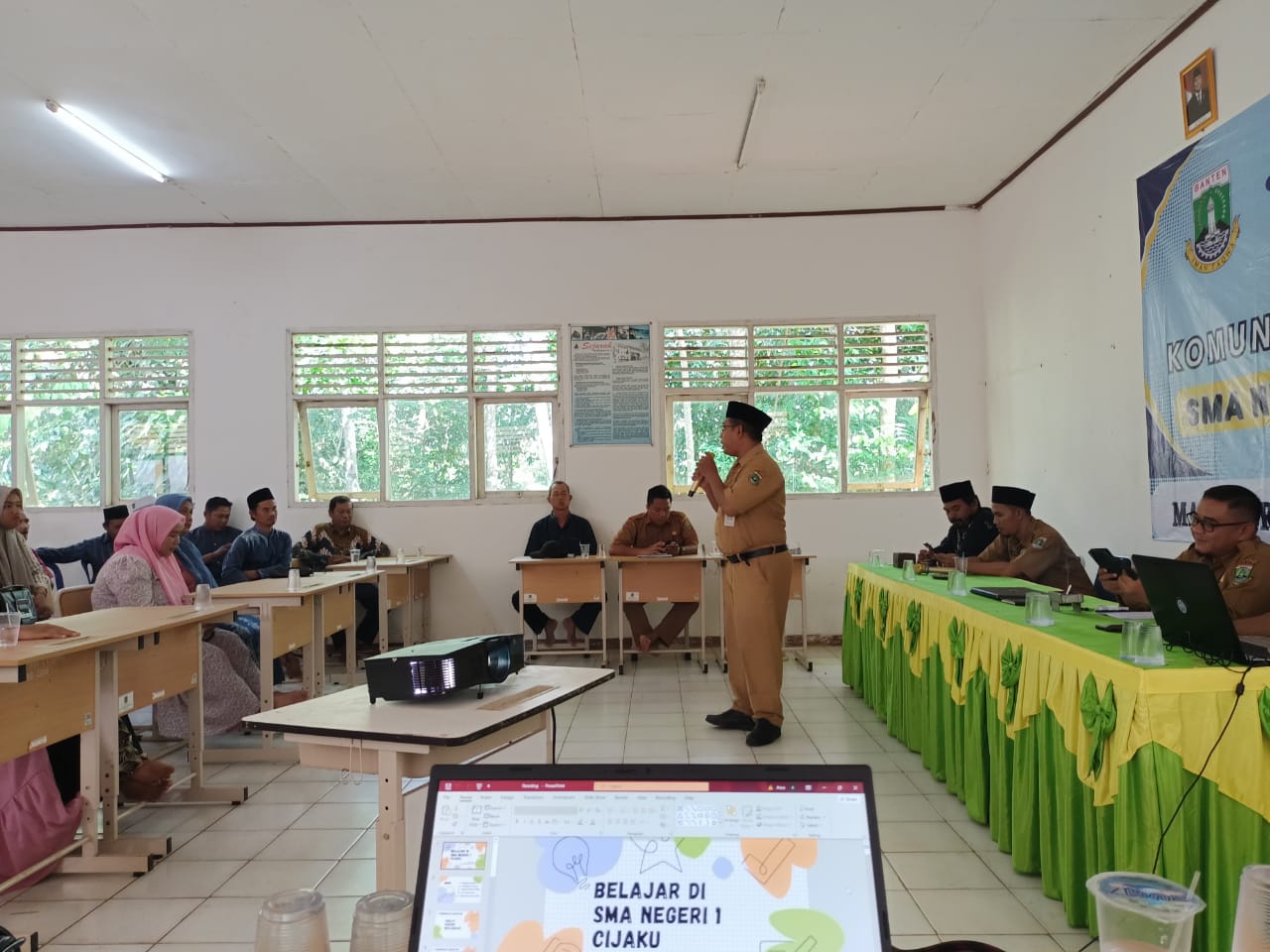 Kegiatan parenting tersebut dibuka oleh Ketua Komite SMAN 1 Cijaku, Bapak Saeroji S.Pd. M.Pd., didampingi Kepala SMAN 1 Cijaku, Bapak Retno Siswanto, S.Pd. Si, M.Pd.,