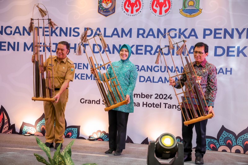 Kegiatan bimbingan teknis tersebut digelar di Grand Soll Marina Tangerang, Kota Tangerang, Selasa (10/12/2024) dan diikuti oleh 100 pelaku UMKM binaan Dekranasda Kota Tangerang.