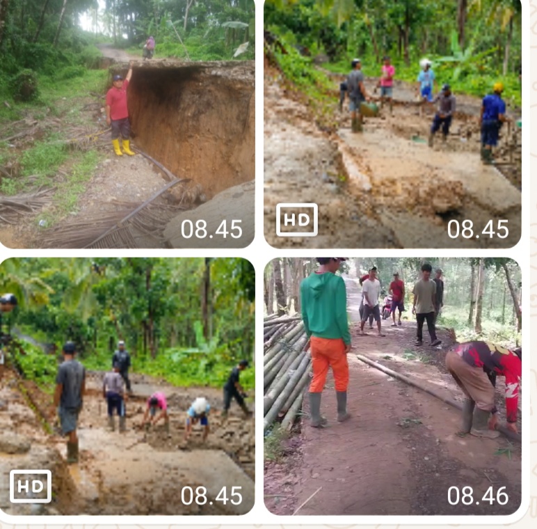 Pantauan awak media Sabtu 7 Desember 2024 ini warga sangat antusias bergotongroyong memperbaiki jalan amblas tersebut dengan menggunakan batang pohon bambu. *(Deni/Irwan)