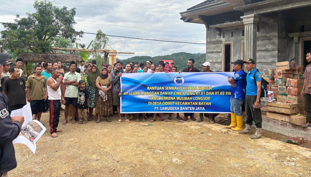 Gemasiber80news.com,LEBAK – Wujud kepedulian terhadap sesama PT Samudera Banten Jaya (SBJ) memberikan bantuan sembako kepada warga Kp Babakan Manggah dan warga Kp Cimentong desa Cidikit Kecamatan Bayah kabupaten Lebak Provinsi Banten yang yang dilanda musibah bencana longsor/Pergerakan tanah, diduga karena intensitas hujan yang cukup tinggi.