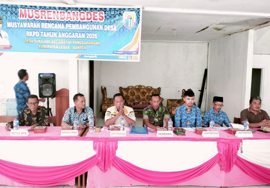 Gemasiber80news.com,LEBAK -Guna menampung aspirasi warga dan melaksanakan peraturan dan amanat pemerintah kabupaten Lebak, Pemerintah desa Sukajadi menggelar Musyawarah rencana pembangunan desa (Musrenbangdes) RKPD tahun anggaran 2026, bertempat diaula kantor desa Sukajadi Kecamatan Panggarangan kabupaten Lebak provinsi Banten Jum’at (17/01/2025)