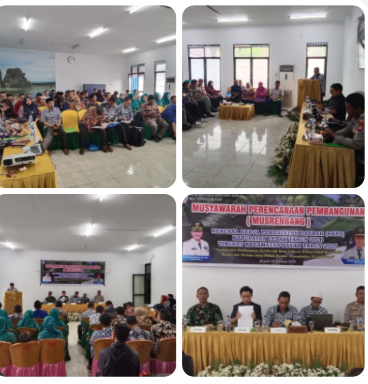 Gemasiber80news.com,LEBAK – Pemerintah kecamatan Bayah menggelar Musyawarah Perencanaan Pembangunan, Rencana Kerja Pemerintah Daerah (Musrenbang-RKPD) tahun 2026, dengan tema “Implementasi Pembangunan Kolaboratif yang Inklusif menuju Lebak yang lebih mandiri dan berdaya saing dalam rangka,meningkatkan kesejahteraan” bertempat di aula kantor kecamatan Bayah Kamis (6/2/2025)