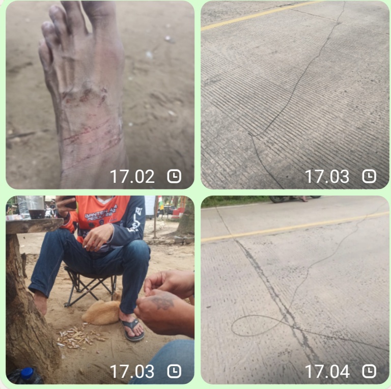 Gemasiber80news.com,LEBAK – Akibat kabel wifi tak bertuan jatuh ke jalan raya Bayah-Cibareno tepatnya depan kantor pintu masuk dermaga milik PT Cemindo Gemilang desa Darmasari Kecamatan Bayah kabupaten Lebak Provinsi Banten telah mencelakai seorang penumpang motor bernama Hendri M alias Rakes sekitar pukul 14.00 senin 12 mei 2025, menyebabkan kaki atas nya terluka/ tergores seperti bekas sayatan senjata tajam.