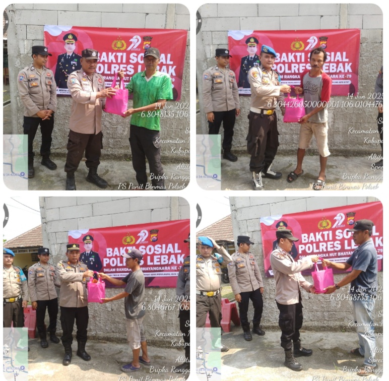 Gemasiber80news.com,LEBAK – Dalam rangka menyambut Hari Bhayangkara ke-79, Polsek Malingoing Polres Lebak Polda Banten menggelar kegiatan Bakti Sosial dengan membagikan 25 paket sembako kepada Komunitas Ojeg Pangkalan Simpang Malingping dan warga sekitar, Sabtu, (14/6/2025).