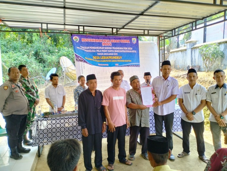 Musyawarah Desa Serah Terima (MDST) kegiatan pelaksanaan pembangunan tahun anggaran 2025 ini berlangsung di Kantor Desa Lebak Peundeuy, pada Rabu (23/7/2025) siang.