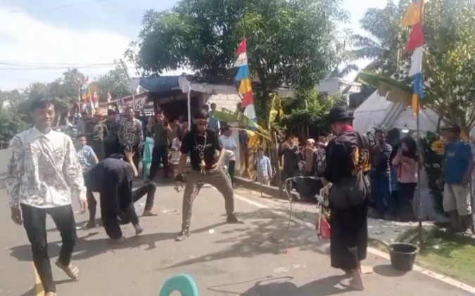 “Seni budaya pencak silat dan debus tersebut dari padepokan yang ada di wilayah Desa Parungsari, Kecamatan Wanasalam, Kabupaten Lebak, Provinsi Banten, dan ini menjadi utama untuk pentas menghibur keluarga besar dan para tamu undangan yang hadir,” terangnya. *(Uzex)