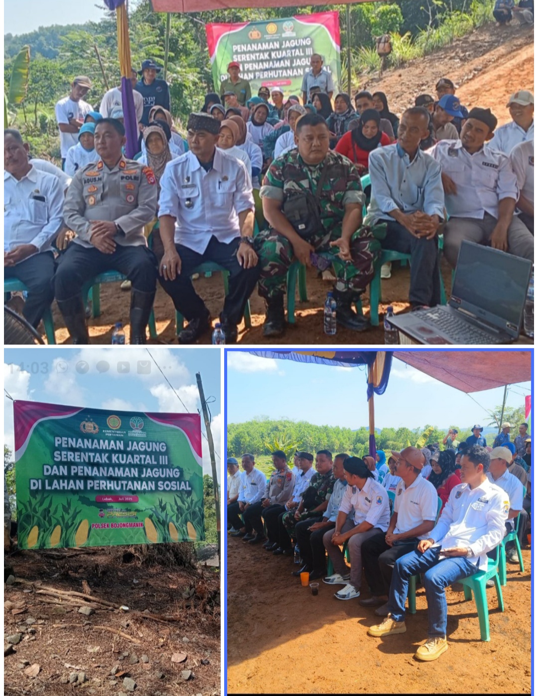 Penanaman jagung dilaksanakan di lahan Perhutanan Sosial, dan dihadiri oleh Camat Bojongmanik, Kepala Desa se-Kecamatan Bojongmanik, Kader Posyandu jajaran personel Polsek Bojongmanik, Danramil, serta para petani yang tergabung dalam Gapoktan setempat.
