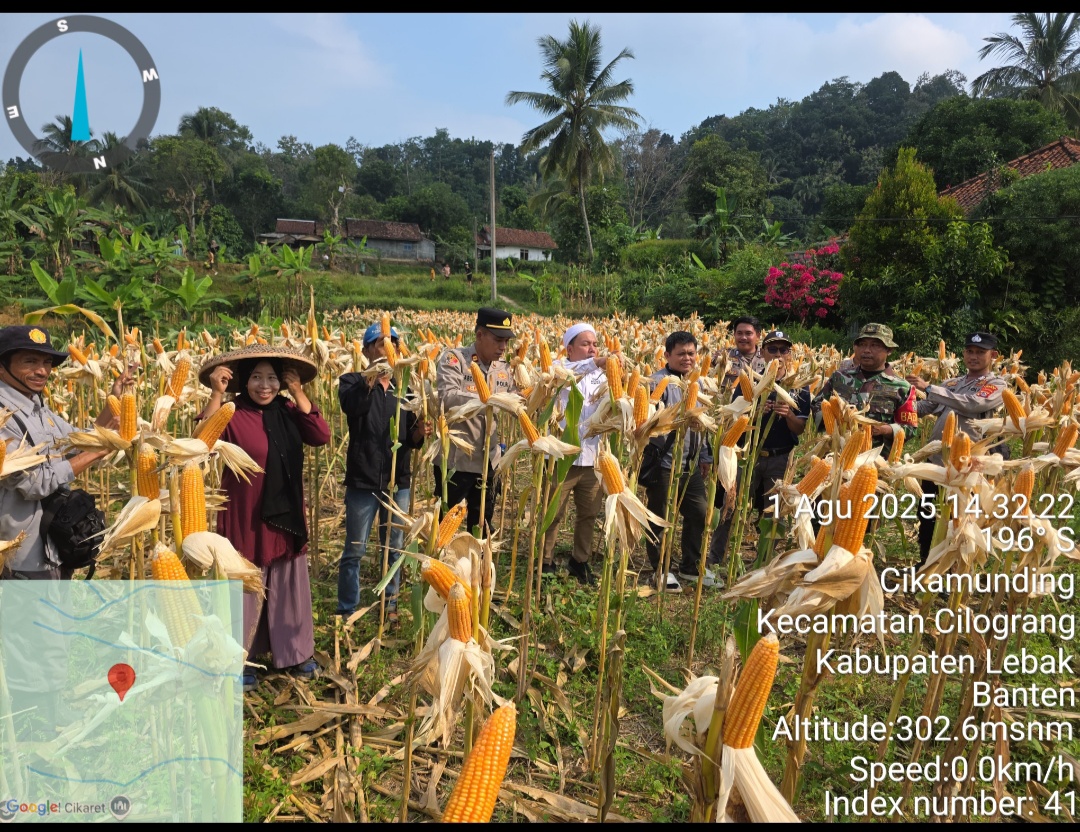 Gemasiber80news.com,LEBAK – Guna Mendukung Swasembada pangan Kapolsek Cilograng Iptu Abdul Wahab S.H bersama Forum komunikasi pimpinan kecamatan (Forkopimcam) melaksanakan Giat Panen Raya Jagung di Kp.Kiara Pandak Desa Cikamunding Kecamatan Cilograng Kabupaten Lebak.