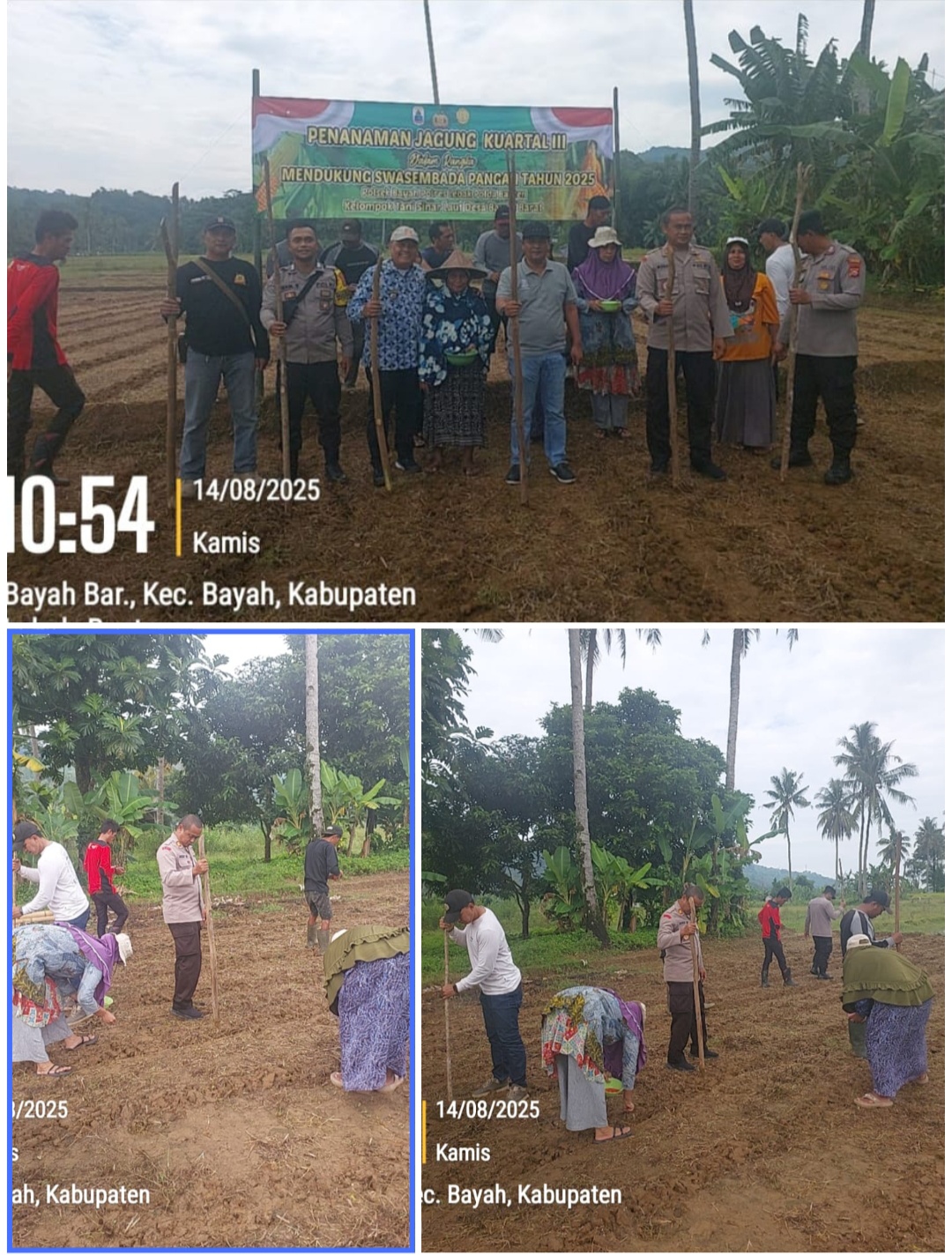 Kapolres Lebak Polda Banten AKBP Herfio Zaki., SIK., MH Melalui Kapolsek Bayah AKP Asep Mulyadi Mengatakan Penanaman ini Kapolsek Bayah Polres Lebak AKP Asep Mulyadi menyampaikan bahwa sebagai bentuk dukungan Asta Cita Presiden, Pihak nya menggandeng Kelompok Tani Sinar Laut Desa Bayah Barat bekerja sama dengan kepala Desa Bayah Barat Memanfaatkan lahan-lahan produktif di wilayah pedesaan. Untuk dilakukan Penanaman Jagung, seluas kurang lebih 1 – 2 Hektar