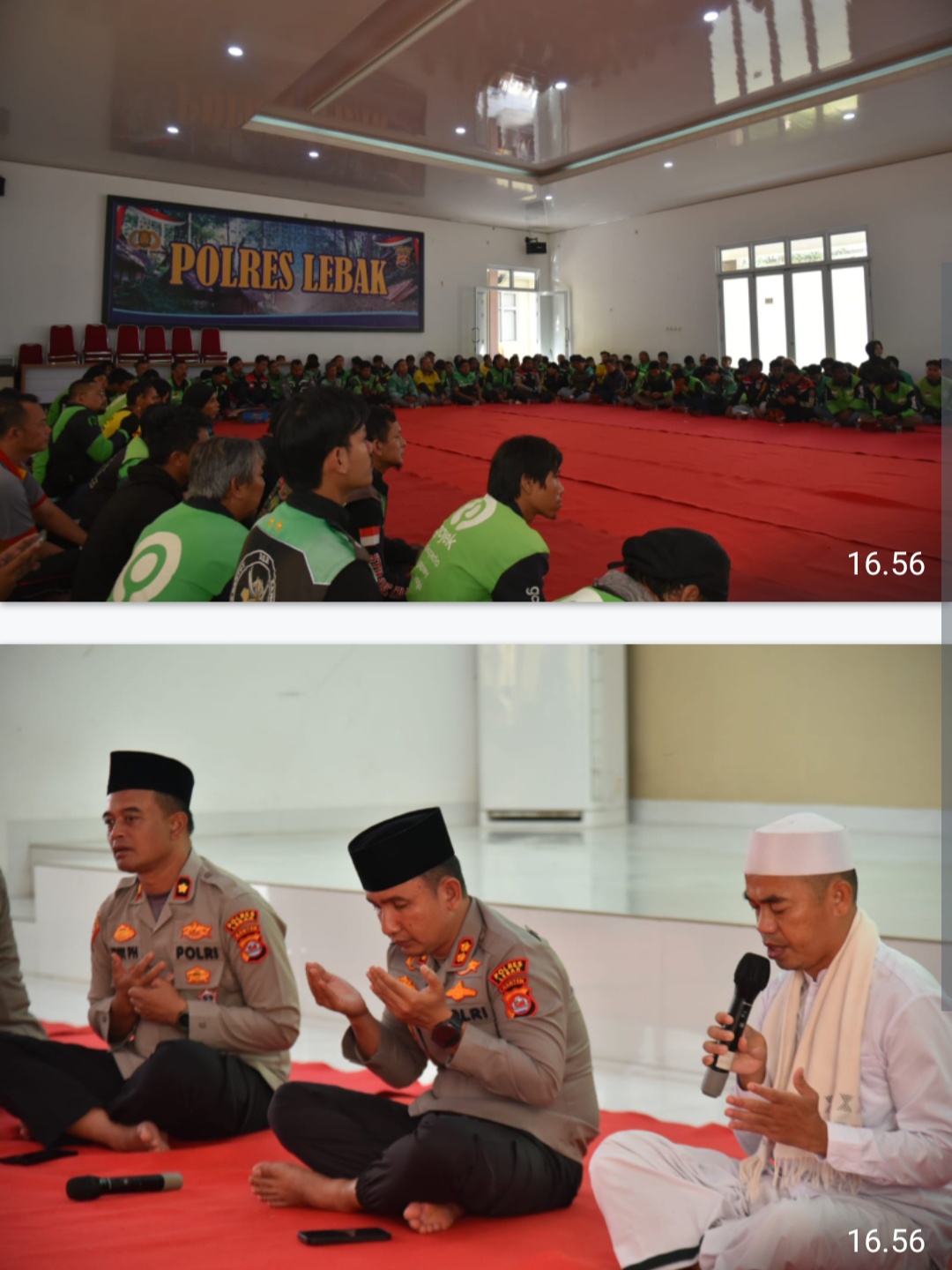 Kegiatan tersebut dihadiri langsung Kapolres Lebak AKBP Herfio Zaki didampingi Wakapolres Lebak Kompol Eddy Prastyo H, S.E., M.M., para Pejabat Utama Polres Lebak, Ustadz Deden, perwakilan OKP Lebak, pengurus komunitas Ojol Lebak, serta ratusan driver Ojol.