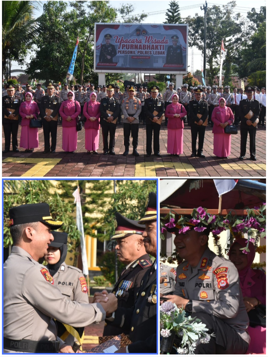 Berdasarkan Surat Keputusan Kapolres Lebak Nomor : Kep/54/VIII/2025 tentang Pemberian Penghargaan kepada Personel Polres Lebak yang memasuki Batas Usia Pensiun. Sebanyak 13 personel yang diwisuda antara lain: