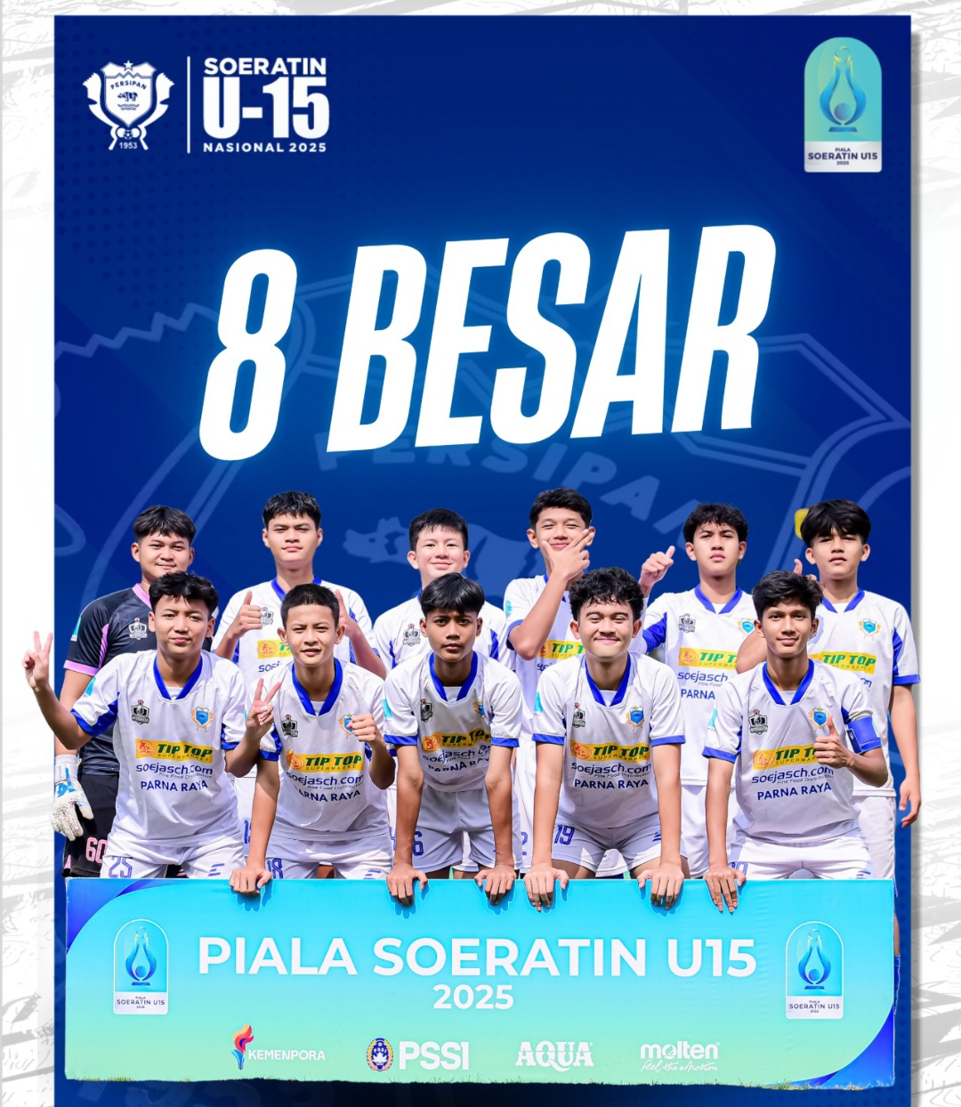 Gemasiber80news.com,MALANG – Tim kesebelasan Persatuan Sepakbola Indonesia Pandeglang (Persipan) U-15 dari Provinsi Banten berhasil masuk delapan besar di Piala Soeratin Tingkat Nasional setelah berhasil mengalahkan Raya United dari Kalimantan Barat 3-0 di stadion universitas Brawijaya Malang, Jawa Timur, Rabu (10/09/2025) sore.